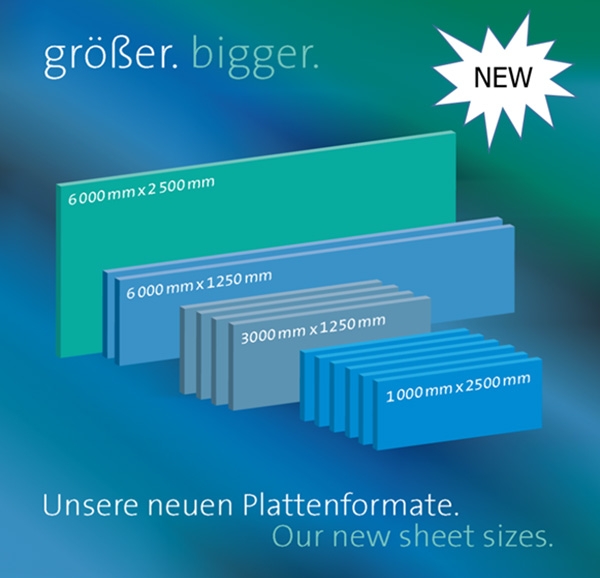 Not only final products like curves or other large-sized finished parts, rings or format sets, but also pre-cuts can ideally be produced from the new sizes. They allow customers greater flexibility for the production of pre-cuts while reducing off-cuts at the same time - such as Murtfeldt can.